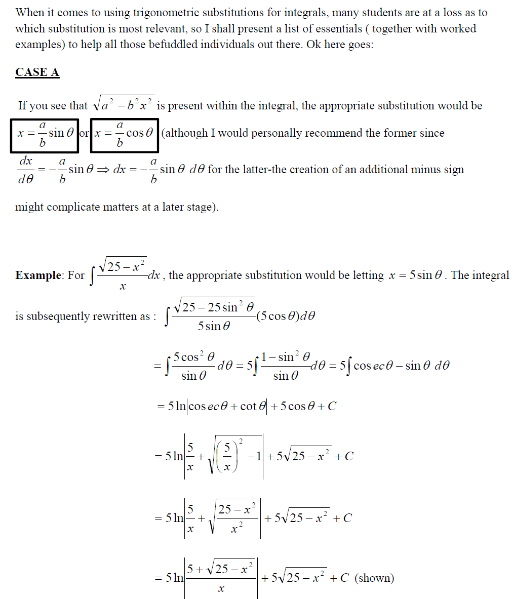 INTEGRATION USING TRIGONOMETRIC SUBSTITUTION