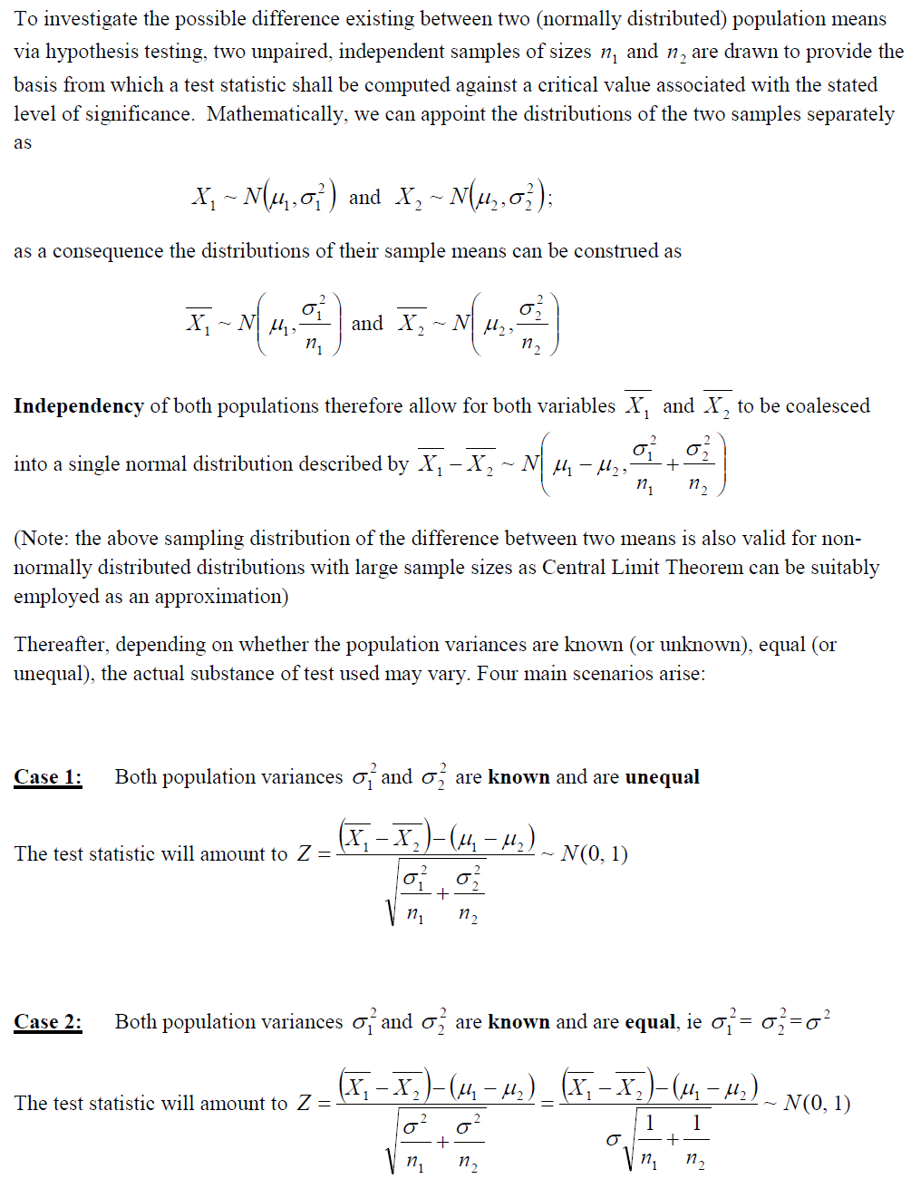 2-SAMPLE HYPOTHESIS TESTING OF DIFFERENCE IN POPULATION MEANS